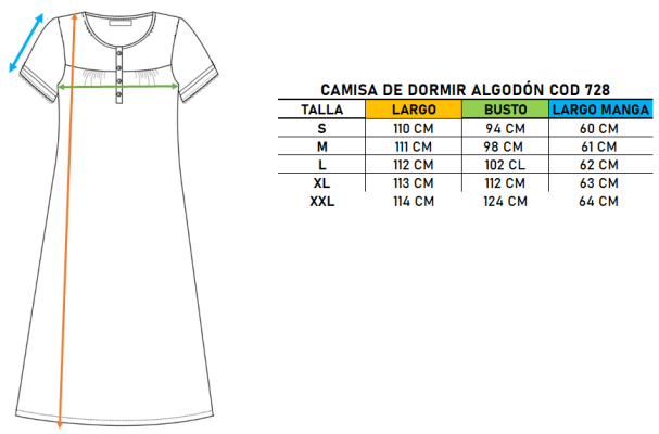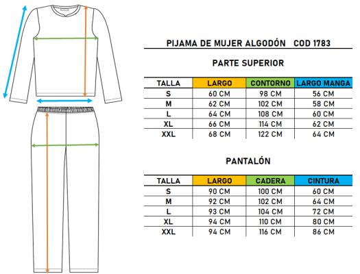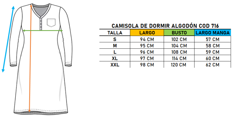 Este producto tiene múltiples variantes. Las opciones se pueden elegir en la página de productoPijama Código: 3131 Algodón Jersey Franjas mangas y hombros Colores: Azul - Mostaza Tallas: S-XXL
