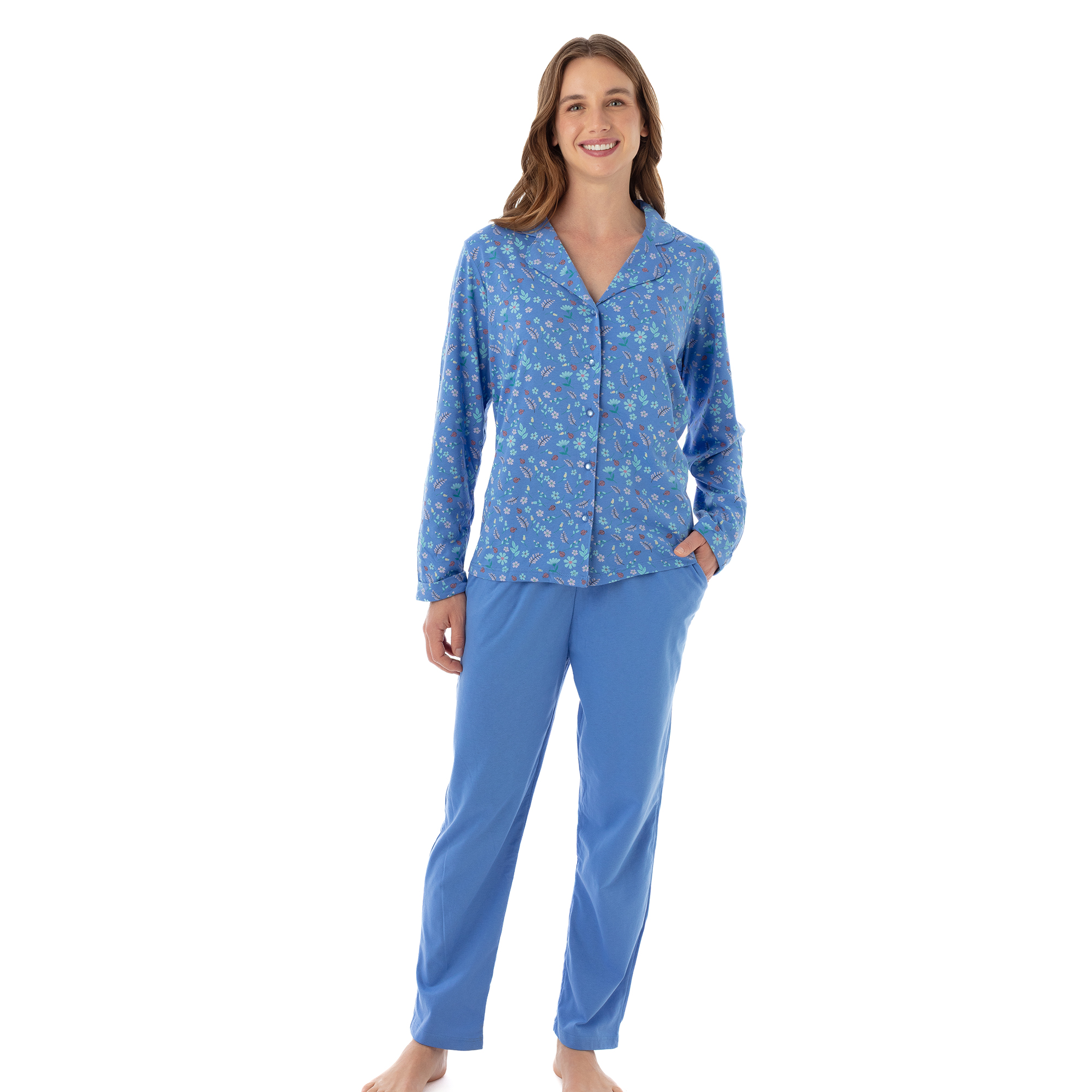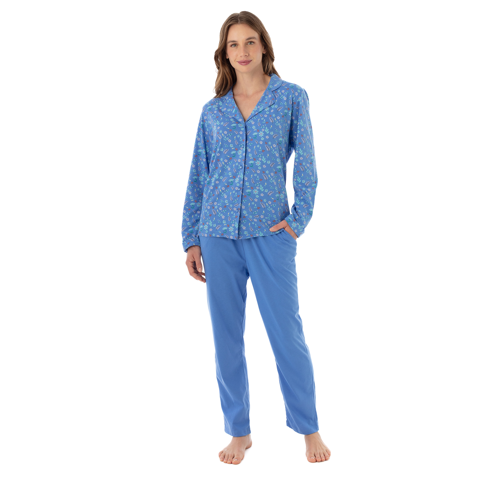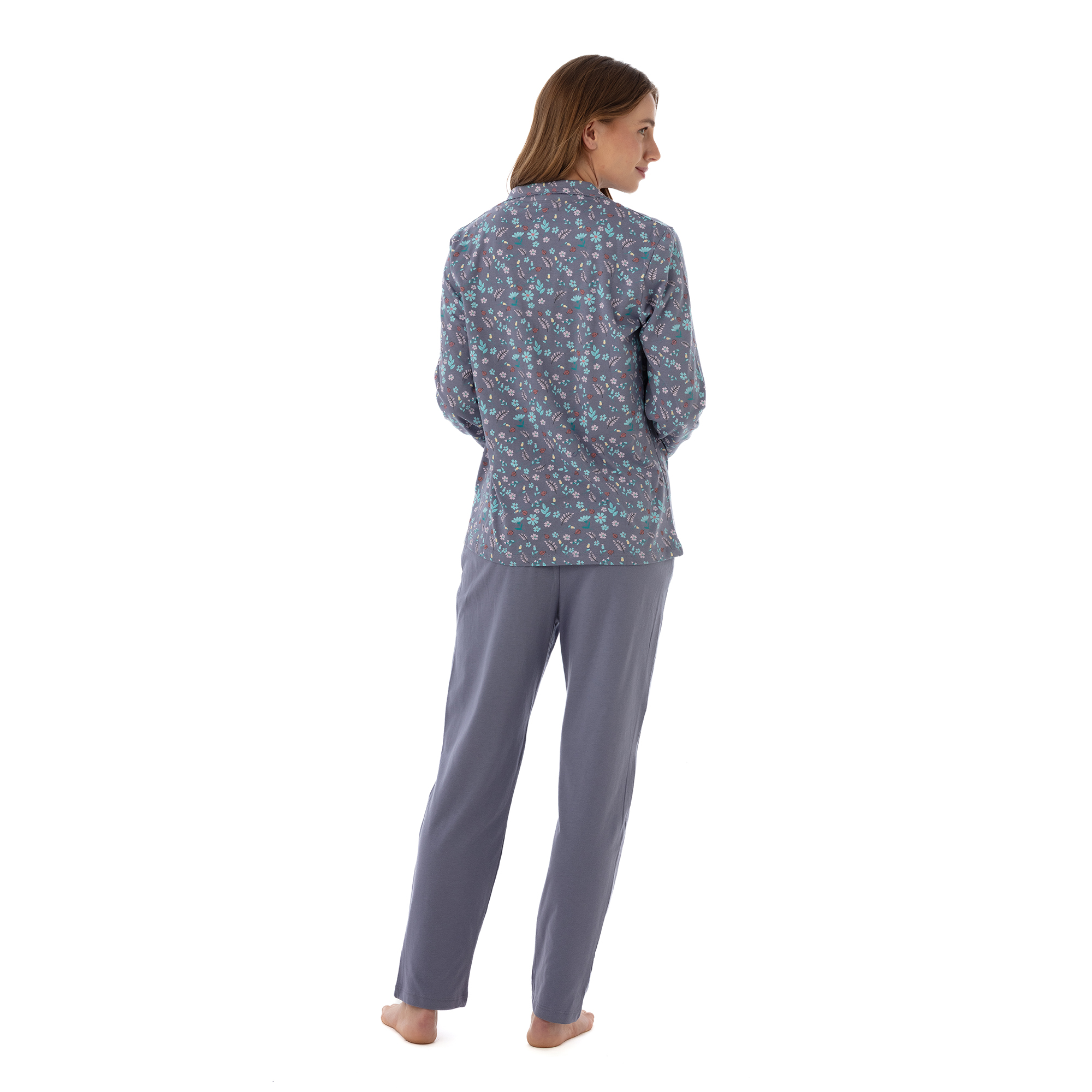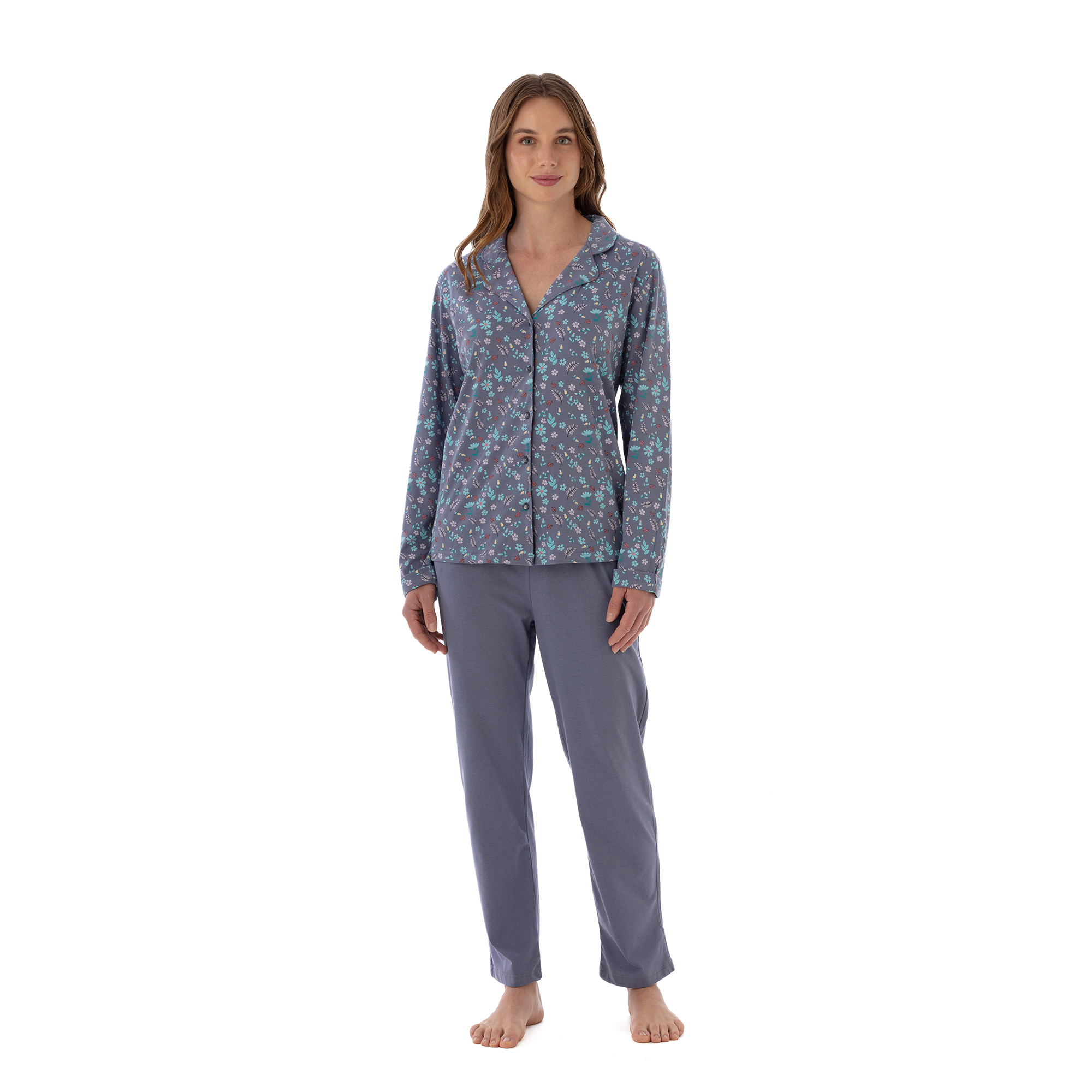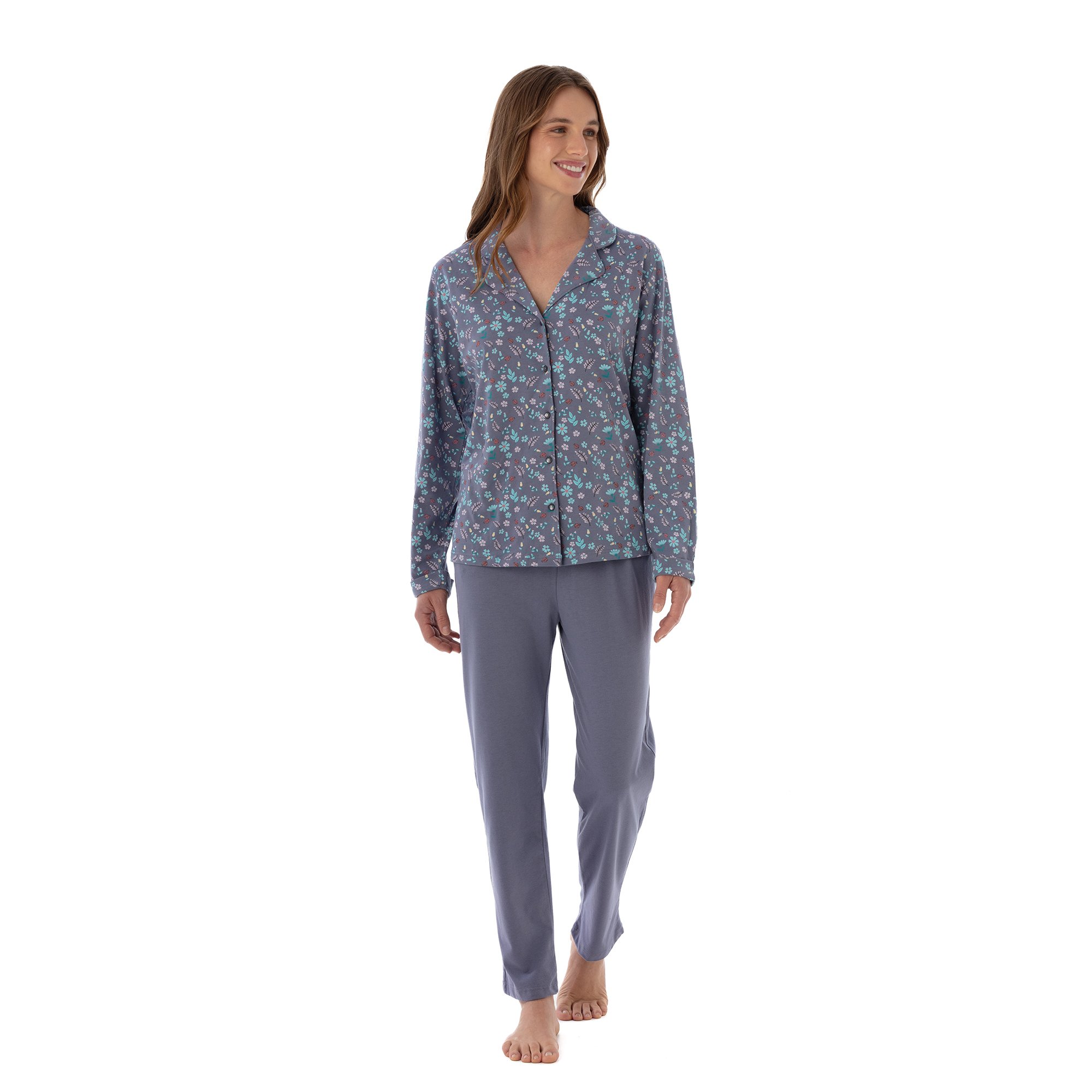 Pijama Código: 1773 Algodón Gamuzado Estampado Pantalón Colores: Fucsia - Azulino