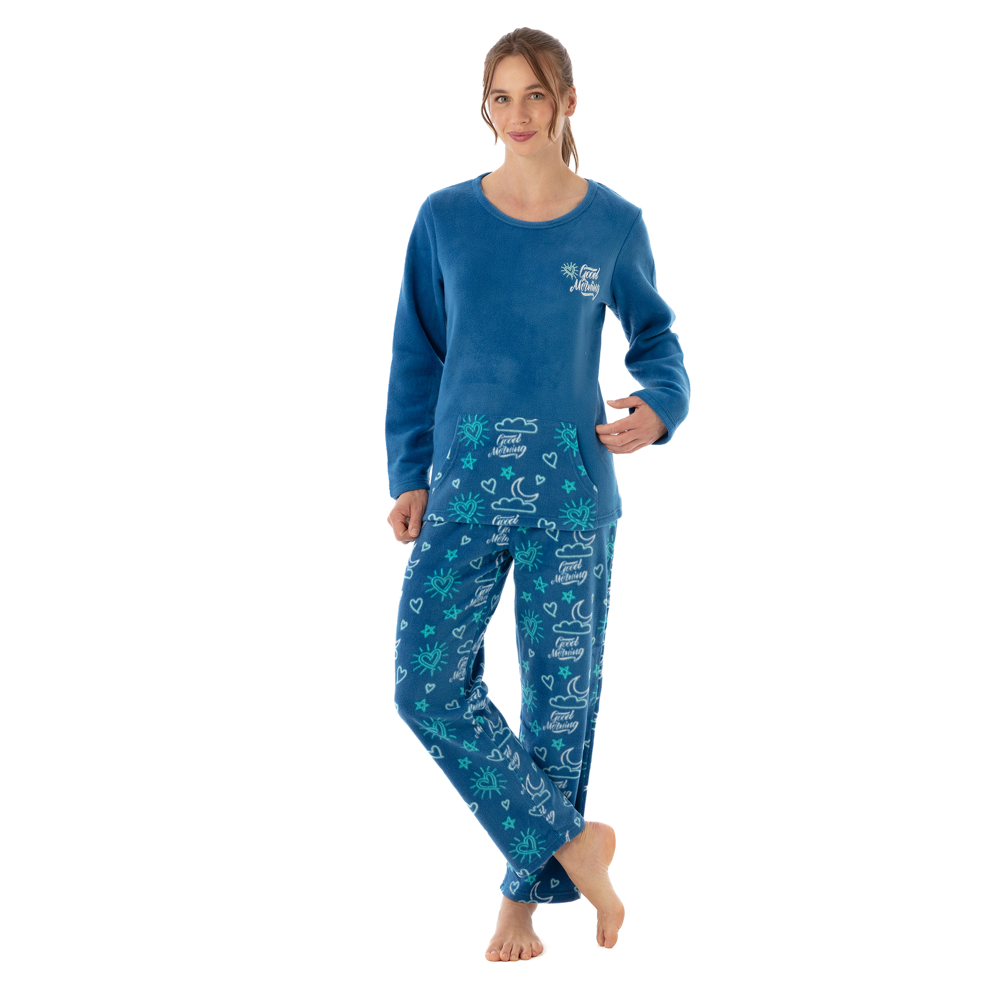 Pijama Código: 1773 Algodón Gamuzado Estampado Pantalón Colores: Fucsia - Azulino Tallas: M-L-XL-XXL